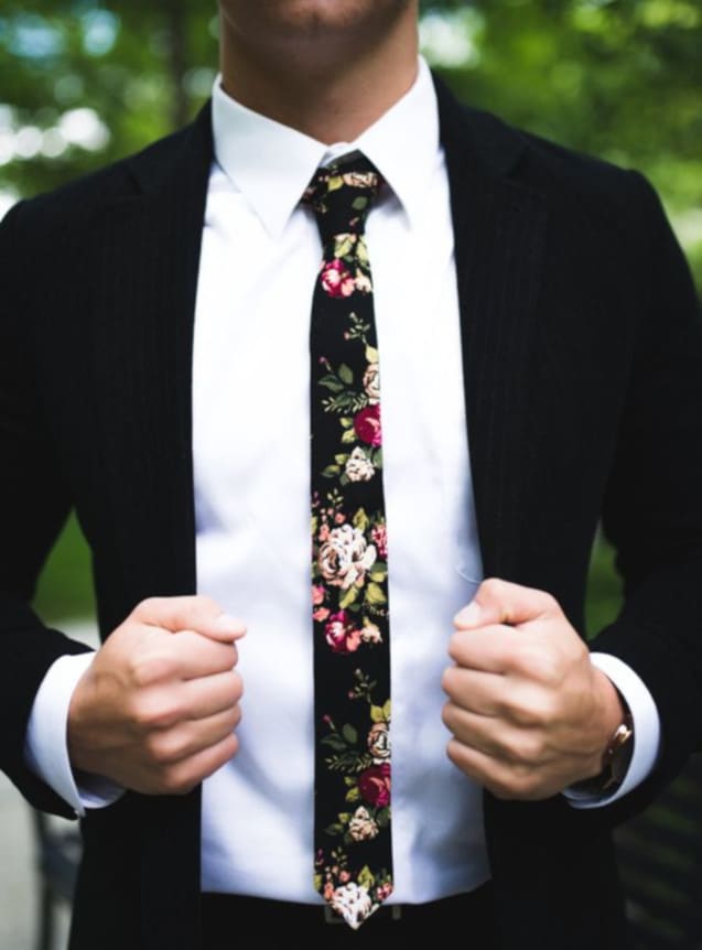 The most important part of any black-tie outfit must be the dinner jacket. Different to a suit jacket a dinner jacket is a black suit blazer that has lapels that are a different shade or texture from the rest of the jacket. For this, you will need a pair of matching black suit trousers.