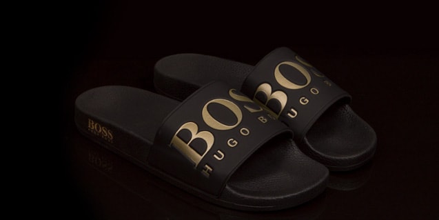 EXCLUSIVE: Boss Green Solar Sliders in Black & Gold