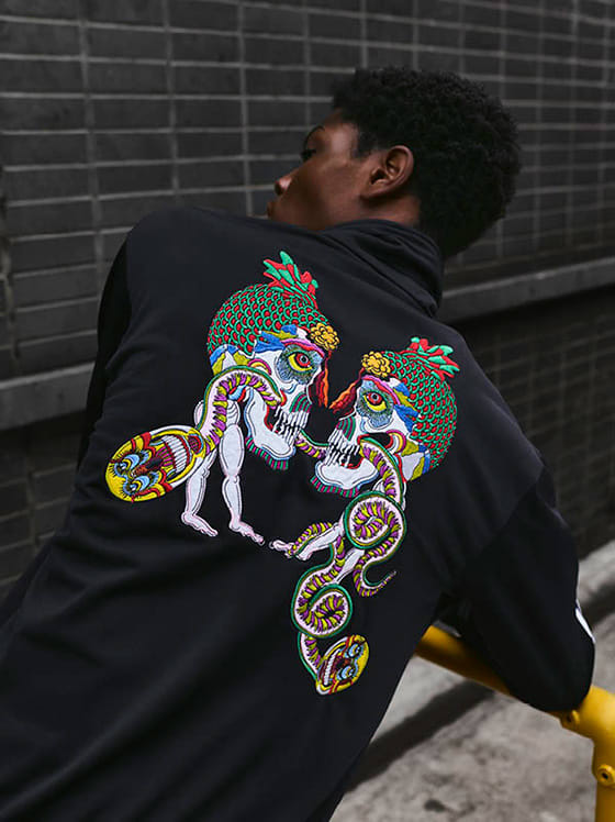 adidas Originals classic, such as tracksuits, hoodies and jogging bottoms, now feature psychedelic pop art. The “Trefoil” logo is given a Tanaami artistic re-style and is morphed into fantastic mythical creatures; inspired by the war and traditional Japanese folklore. The art showcases Tanaami’s signature bizarre monsters and scary fauna that provide adidas with a horrifically brilliant twist we cannot get enough of.
