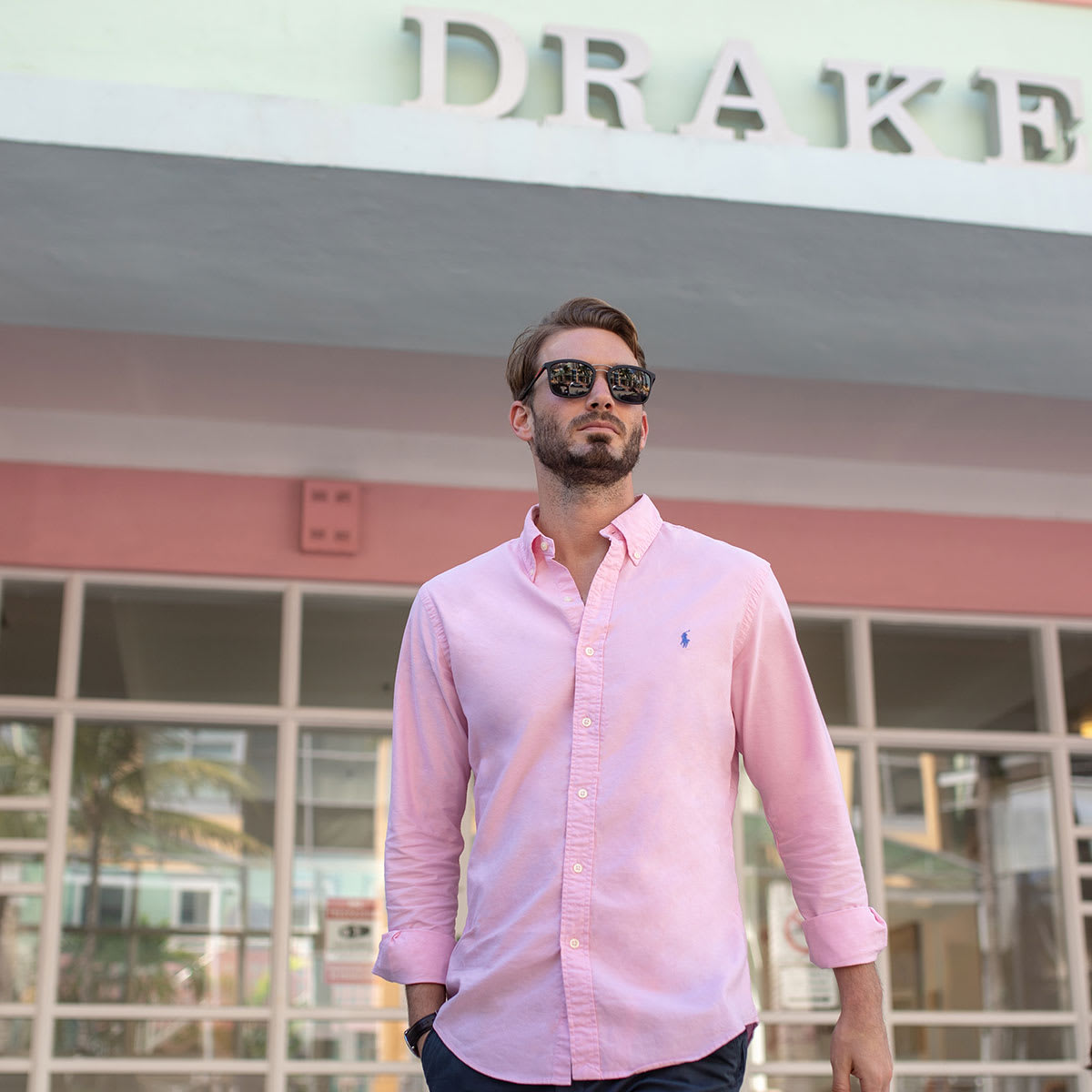 Sporting my own pastel pink flamingo print shoes, in a city dominated with beautiful pastel colours everywhere you look, we couldn’t not show off a pink shirt. Our Ralph Lauren pink shirt gives you the chance to fit in with these warm tones for summer 2019.