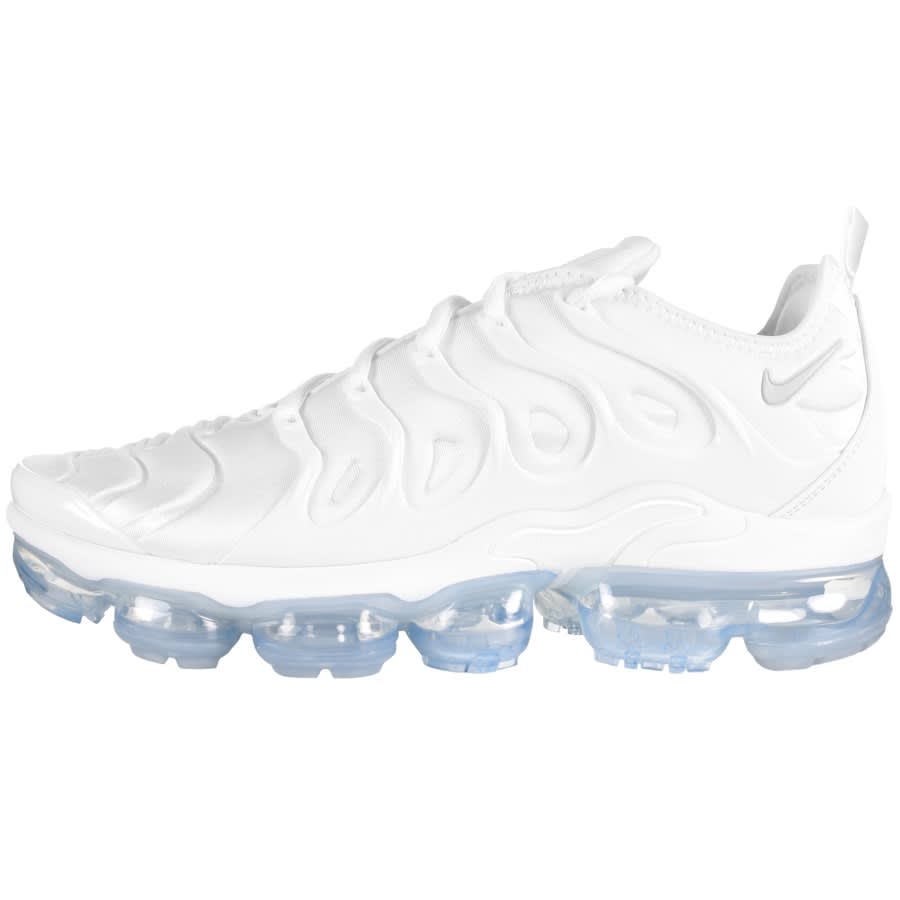 In no particular order, our first pair by Nike create a big statement with a pair of Nike Air VapourMax Plus trainers. These silhouettes are completely white, from the laces to the upper sole, meaning the stitching is the only thing that creates texture on the shoe. To makes things a bit louder, the chunky underfoot creates a gravity defying sensation and makes the whole outfit.
