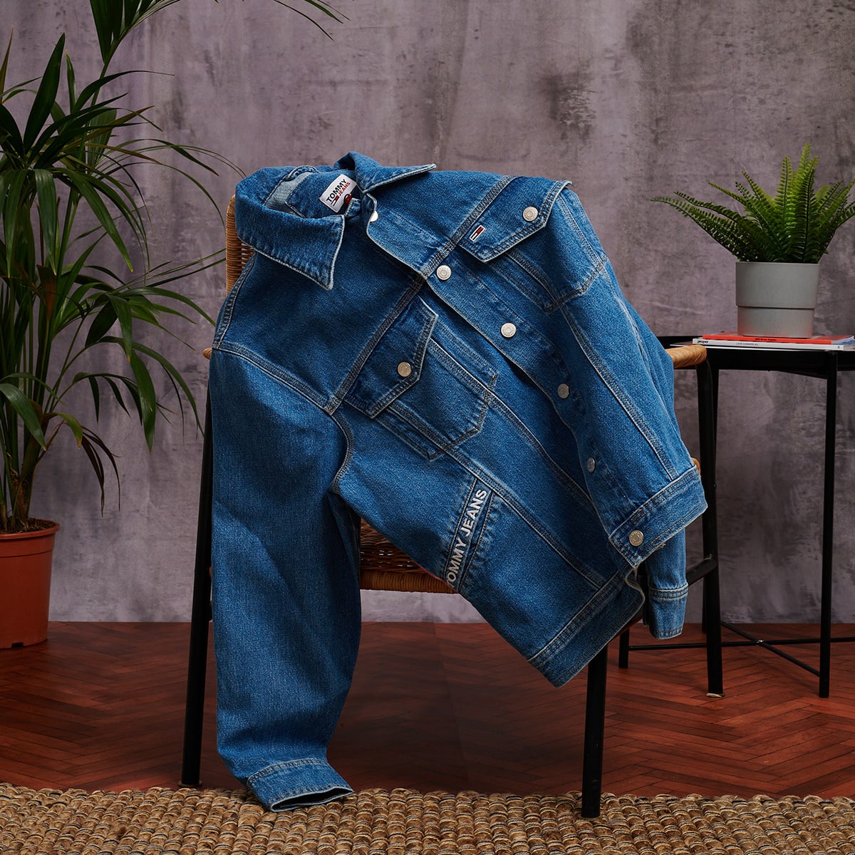 A simple jeans and denim jacket combo is always a winner, but you can also get creative with different washes and colours. Just make sure the colours complement each other.